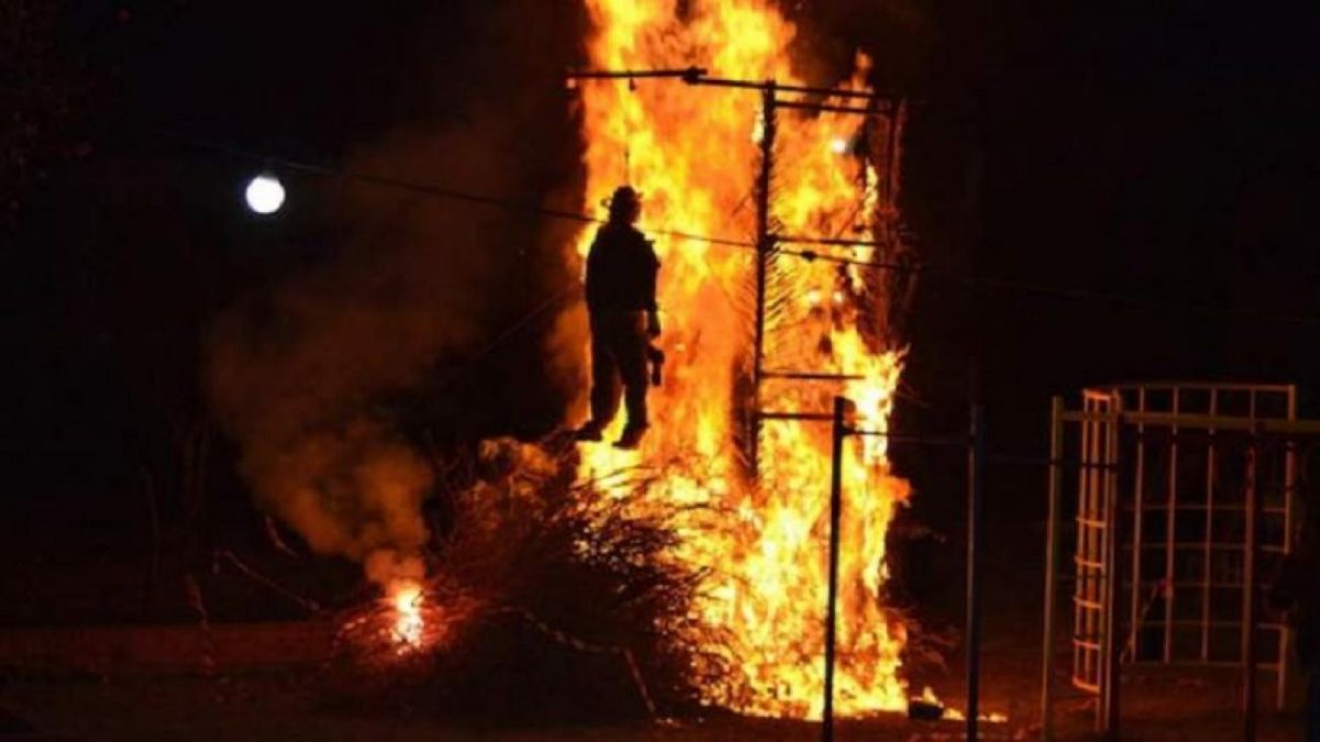 Τα ξύλα σχηματίζουν ένα μεγάλο και ψηλό σωρό που, στην κορυφή του, στηρίζεται ένα ομοίωμα ανθρώπου, ντυμένο με ρούχα. Τα ρούχα αυτά συνήθως είναι γεμισμένα με άχυρα και η όψη κάποιες φορές μοιάζει τόσο πολύ σε άνθρωπο, που αν πέσει το σκοτάδι, το βράδυ του Μεγάλου Σαββάτου, και κάποιος δεν γνωρίζει, βλέποντας πάνω στο σωρό των ξύλων την ανθρώπινη φιγούρα «σκιάζεται», δηλαδή τρομάζει, όπως λέγεται στην κρητική ντοπιολαλιά.