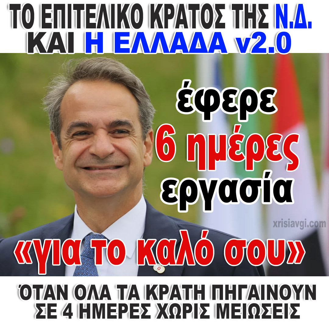 Συγχαρητήρια στην ελληνική κυβέρνηση της Νέας Δημοκρατίας που αντί να καταπολεμά τις κοινωνικές και οικονομικές παθογένειες και να βελτιώνει το επίπεδο ζωής των Ελλήνων, πάει προς τα «πίσω»! Καταλύει εργασιακά δικαιώματα δεκαετιών, δίνοντας την ευκαιρία σε όλον τον πλανήτη να γελάει και να ειρωνεύεται την «αναπτυξιακή προσέγγιση» που ευαγγελίζεται η κυβέρνηση της Ν.Δ..