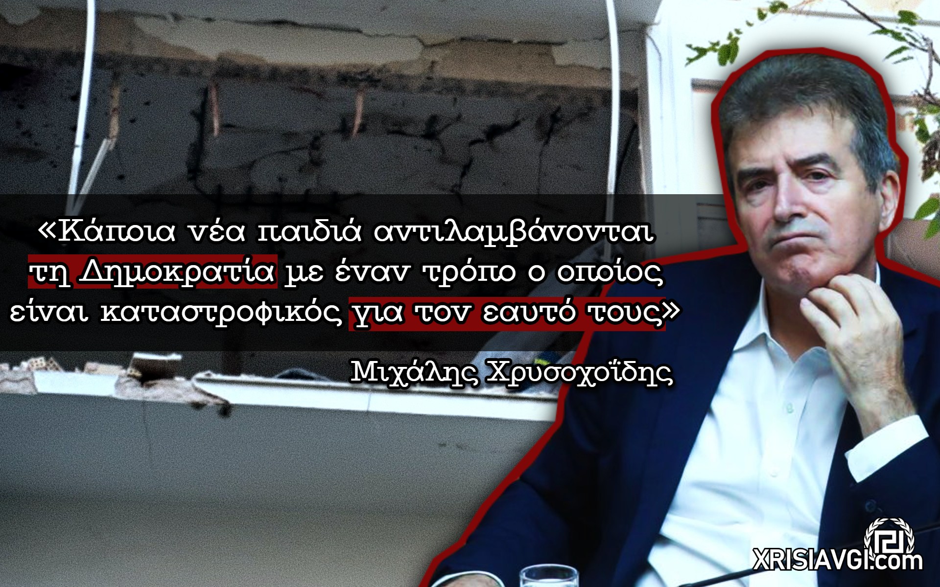 Με σχεδόν… μειλίχια λόγια επιμένει να περιγράφει τους δράστες της θηριώδους έκρηξης στους Αμπελόκηπους, ο ο υπουργός Προ.Πο. της Νέας Δημοκρατίας. Ερωτηθείς σχετικά με την ταυτότητα των τρομοκρατών, ο Μιχάλης Χρυσοχοΐδης παρουσίασε λίγο-πολύ την εικόνα κάποιων… παραστρατημένων νέων: