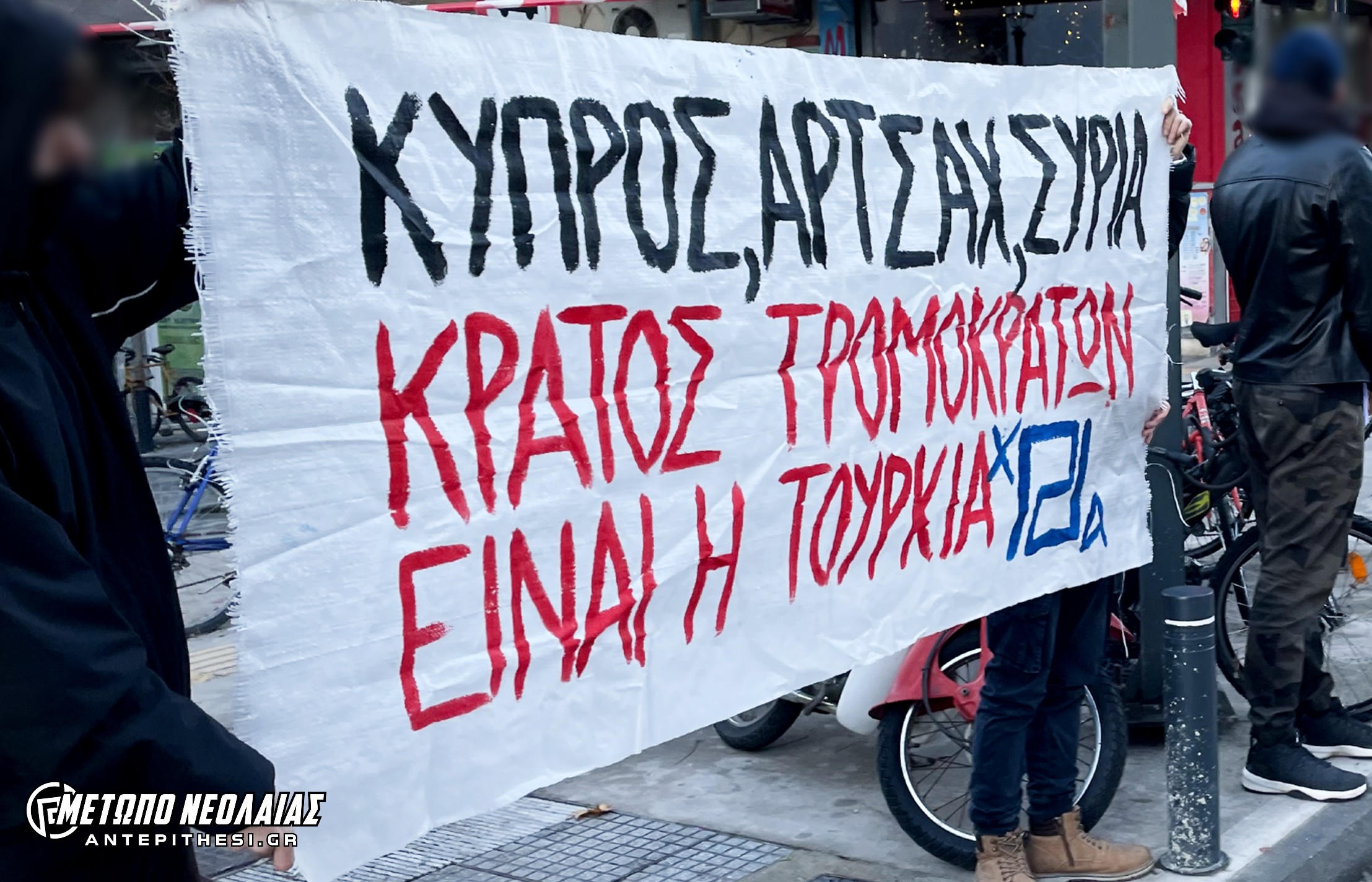 Την Κυριακή 8 Δεκεμβρίου, κλιμάκιο του Μετώπου Νεολαίας Θεσσαλονίκης, πραγματοποίησε εκτεταμένη ενημερωτική δράση στο κέντρο της πόλης με θέμα τις ραγδαίες εξελίξεις στην Συρία. Οι Συναγωνιστές ξεκίνησαν συμβολικά την εξόρμηση τους έξω από το τουρκικό προξενείο, όπου ύψωσαν πανό με αναφορά στα διαχρονικά και συνεχιζόμενα εγκλήματα του προαιώνιου εχθρού του Ελληνισμού. Ταυτόχρονα, διανεμήθηκαν εκατοντάδες ενημερωτικά φυλλάδια, με κείμενο που αποκαλύπτει την πραγματικότητα πίσω από την πολεμική αναζωπύρωση αλλά και την αισχρή στάση της «ελληνικής» κυβέρνησης.