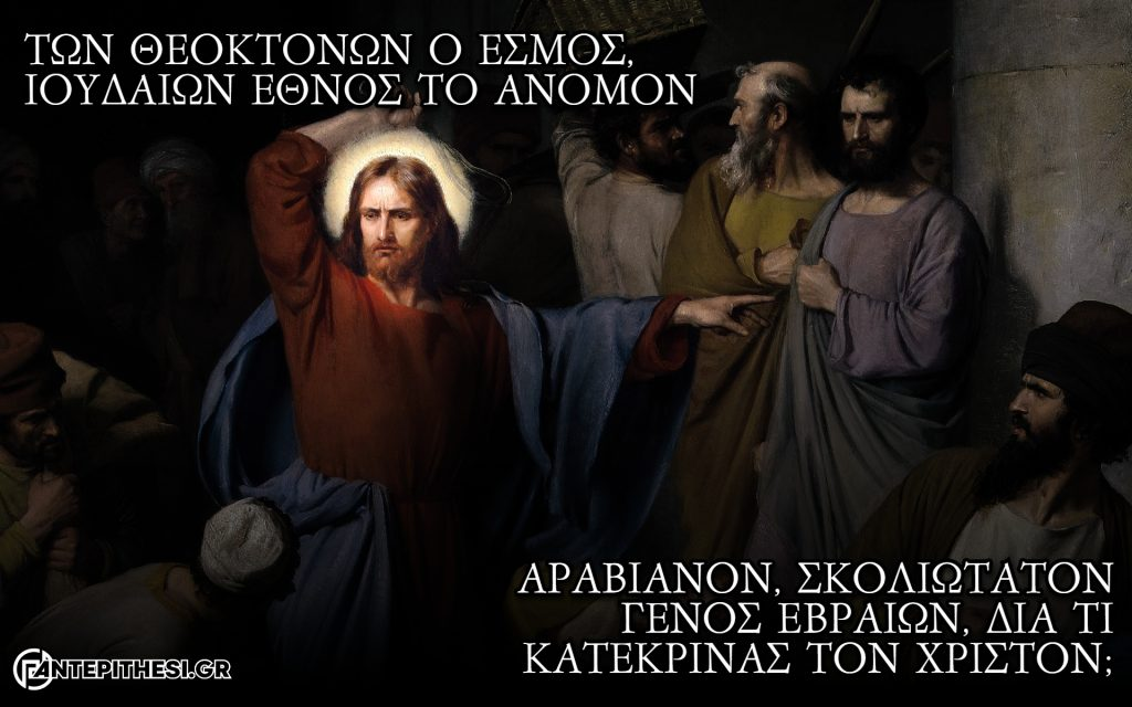 Γένος των Εβραίων, διεστραμμένο και άγριο σαν τους Άραβες, αφού γνώριζες ότι ο Ναός θα εγερθεί εκ νέου (δηλ. θα αναστηθεί ο Σωτήρας) γιατί καταδίκασες τον Χριστό;