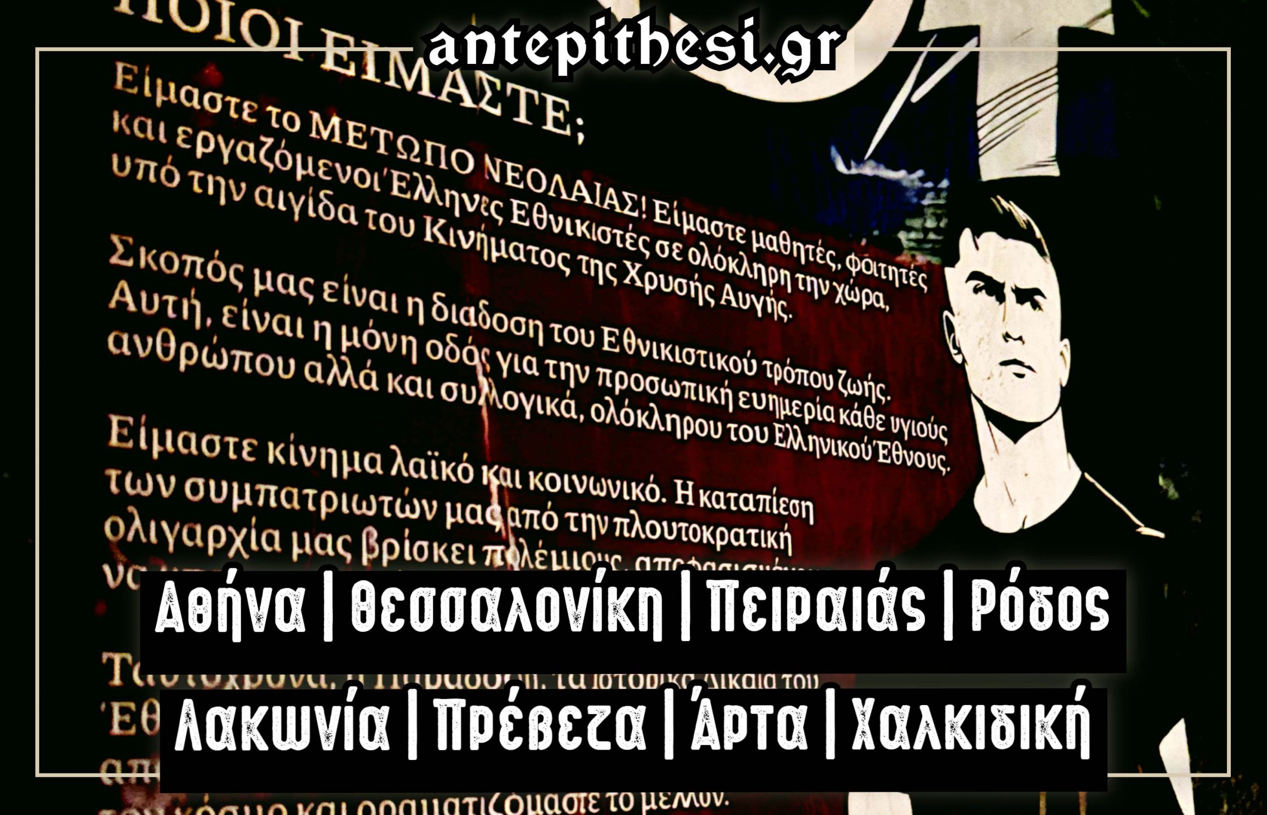 Στο Αιγάλεω, κλιμάκιο του Μετώπου Νεολαίας ανάρτησε πανό, με αφορμή τις εξελίξεις στην Παλαιστίνη και τη φημολογούμενη καταφυγή του Ισραηλινού πρωθυπουργού στην Ελλάδα. Η πράξη αυτή εκφράζει ξεκάθαρα την αντίθεση των Ελλήνων Εθνικιστών απέναντι σε ένα κράτος που εδράζεται σε ανθελληνικές και αντιχριστιανικές αρχές. Παράλληλα, αναδεικνύει τη βαθιά υποκρισία εκείνων που εξεγείρονται σε κάθε αμφισβήτηση της κυρίαρχης αφήγησης περί του «εβραϊκού ολοκαυτώματος», αλλά υπερασπίζονται με γλοιώδη ευχαρίστηση τα σύγχρονα εγκλήματα του Ισραήλ.