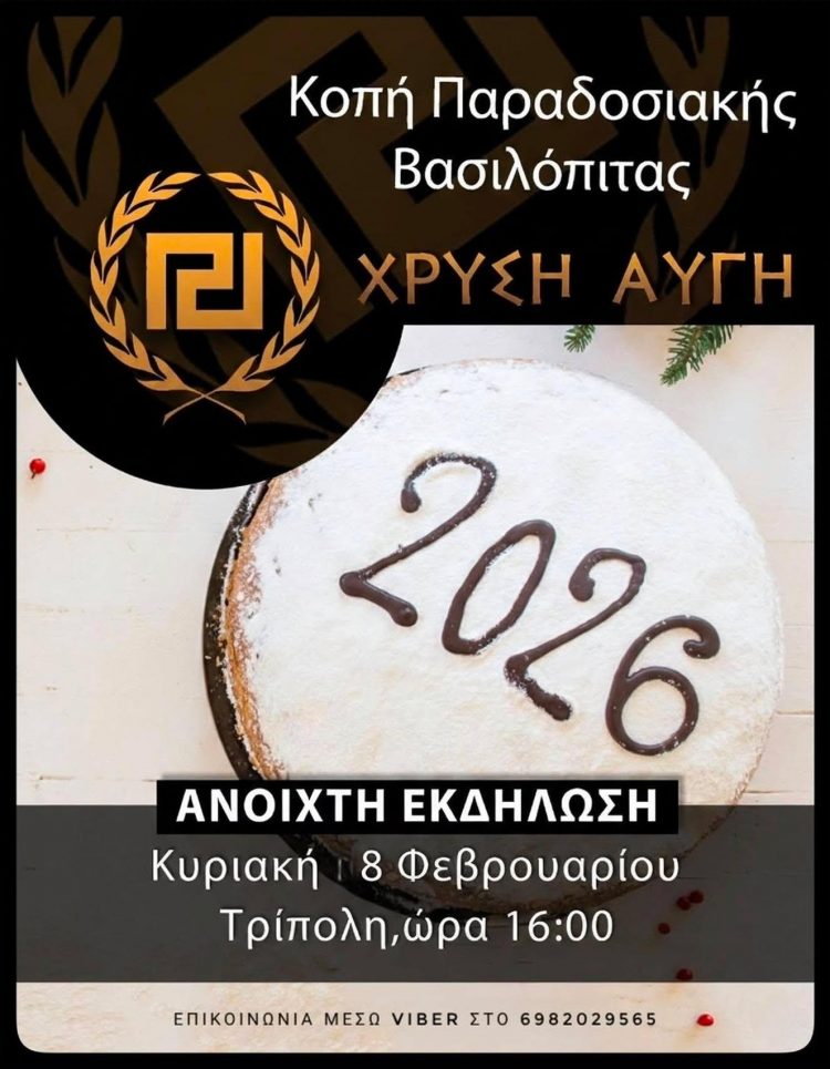Το Μέτωπο Νεολαίας και η Περιφερειακή Οργάνωση Πελοποννήσου του Λαϊκού Συνδέσμου – ΧΡΥΣΗ ΑΥΓΗ, τηρώντας την Ελληνική παράδοση, προσκαλούν όλους τους Συναγωνιστές και φίλους του Κινήματος μας στην κοπή της πρωτοχρονιάτικης βασιλόπιτας. Στην εκδήλωση θα διατίθεται Υλικό Δράσης για την οργάνωση ενός ακόμα αγωνιστικού έτους. Η εκδήλωση θα πραγματοποιηθεί την Κυριακή 8 Φεβρουαρίου και ώρα…