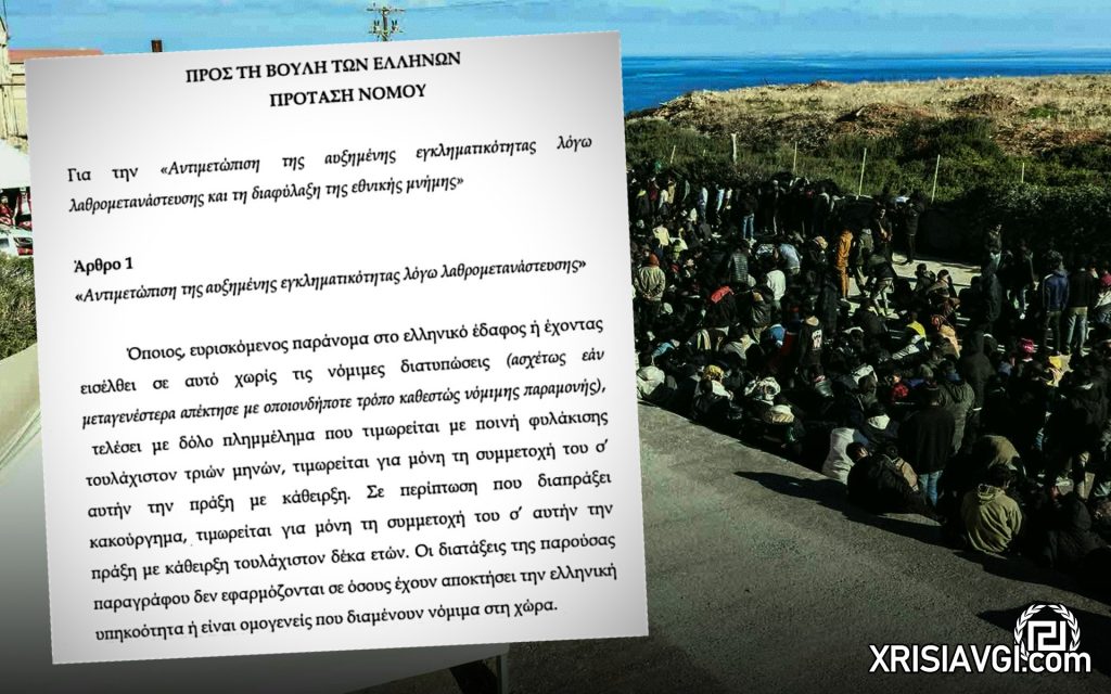 Στην πρόταση νόμου για την «Αντιμετώπιση της αυξημένης εγκληματικότητας λόγω λαθρομετανάστευσης και τη διαφύλαξη της εθνικής μνήμης»
