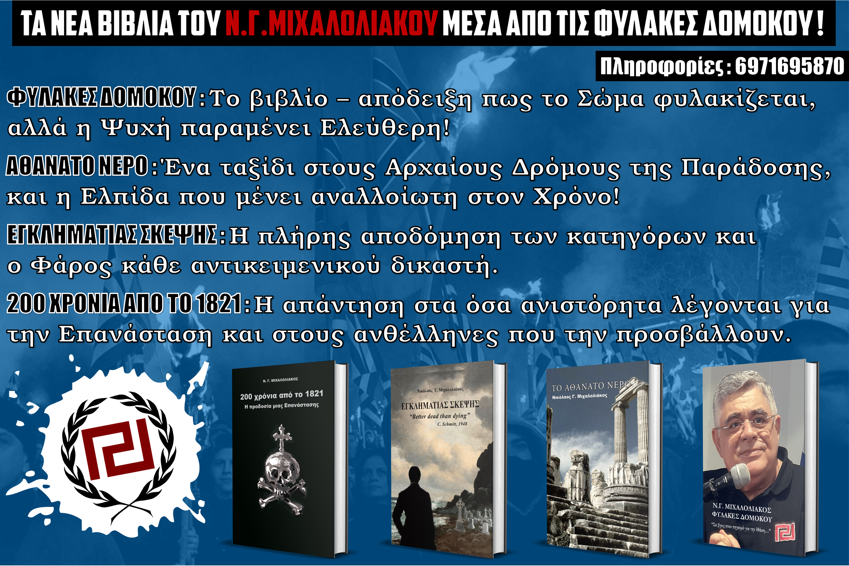 DetailsΤΑ ΠΑΡΑΚΑΤΩ ΒΙΒΛΙΑ ΤΟΥ ΝΙΚΟΛΑΟΥ Γ. ΜΙΧΑΛΟΛΙΑΚΟΥ ΚΥΚΛΟΦΟΡΟΥΝ ΚΑΙ ΔΙΑΤΙΘΕΝΤΑΙ. ΠΕΡΙΣΣΟΤΕΡΕΣ ΠΛΗΡΟΦΟΡΙΕΣ ΣΤΟ ΤΗΛΕΦΩΝΟ 6942416220 και στο email [email protected] ΕΚΔΟΣΗ 2021: 200 χρόνια από το 1821 Η προδοσία μίας Επανάστασης “Μία Τρίχρωμη Σημαία Μαρτίου 10 του έτους 2021 και το κράτος των Αθηνών “τιμά” την επέτειο των 200 χρόνων από την Επανάσταση του 1821, καταργώντας, βεβηλώνοντας…