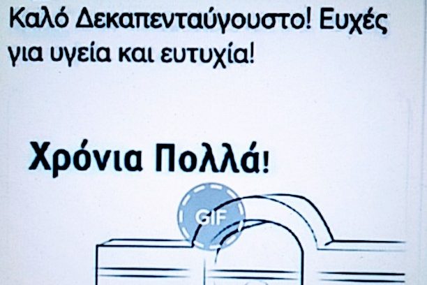 Detailshttps://ioannislamprogiannis.blogspot.com/2022/08/o.html Ὁ «ψηφιακὸς» Πιερρακάκης (βλ. φωτογραφία) κι ὁ Μητροπολίτης Ναυπάκτου Ἱερόθεος (τοῦ ὁποίου ἡ θεολογική ἀκρίβεια ἐνοχλήθηκε ἐπιλεκτικὰ ἀπὸ τὸ πηγαῖο καὶ πνευματικὰ περιεκτικότατο «Καλὴ Παναγιὰ») εὔχονται στοὺς Ὀρθοδόξους Ἕλληνες «Καλὸ Δεκαπενταύγουστο» -ὅπως, ἐν ὄψει τοῦ Ἁγίου Δωδεκαημέρου, καὶ πιθηκίζοντας τὸ made in USA «happy holiday», οἱ «πολιτικὰ ὀρθοὶ» εὔχονται «Καλὲς Γιορτές».