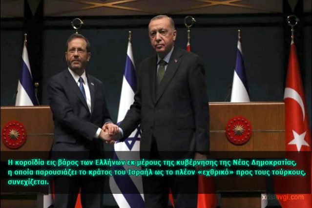 Ισραήλ-Τουρκία και πάλι συμμαχία «Η Τουρκία και το Ισραήλ αποφάσισαν την πλήρη αποκατάσταση των διπλωματικών τους σχέσεων. Έτσι, οι δύο χώρες θα διορίσουν πρεσβευτές η μία στην πρωτεύουσα της άλλης,